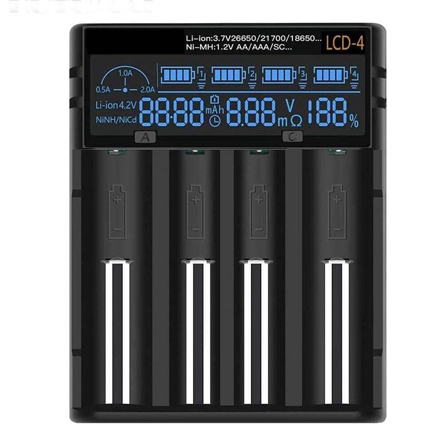 cargador rpido para pilas aa/aaa, 4 ranuras, negro; carga eficiente y rpida para dispositivos electrnicos.