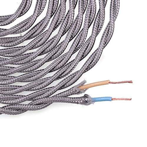 carrete de cable textil trenzado h03vv-f 2 x 0,75 mm gris oscuro, 5 m, ideal para instalaciones elctricas y decoracin.