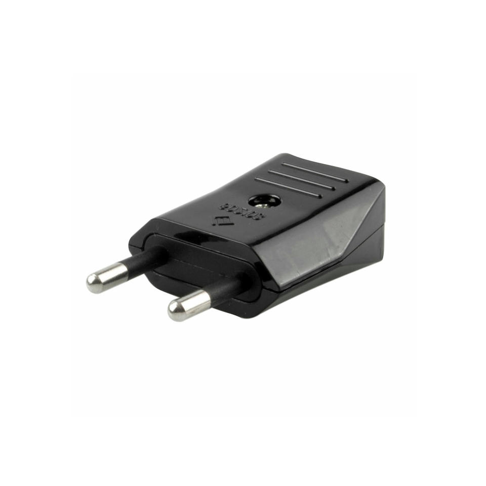 clavija bipolar de 10 a, color negra, ideal para conexin de electrodomsticos y dispositivos elctricos.