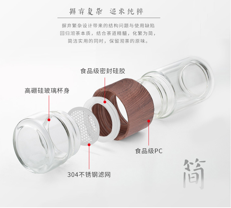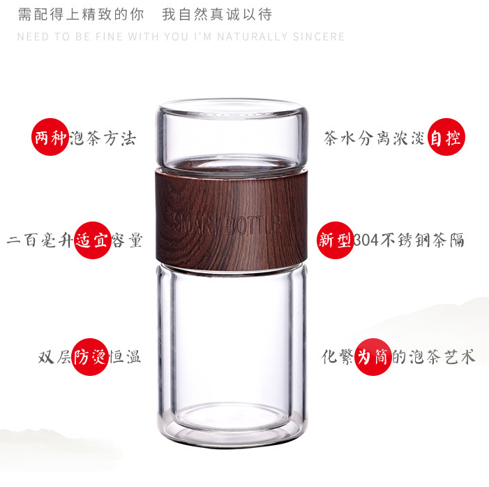 Nome del prodotto:Doppia parete acqua filtro separazione tè viaggio tazza di vetro tazza