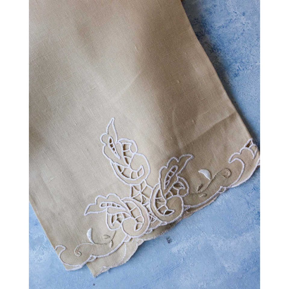 Cream Linen Hand Embroidered Towel 139x70 cm New From Trunk
