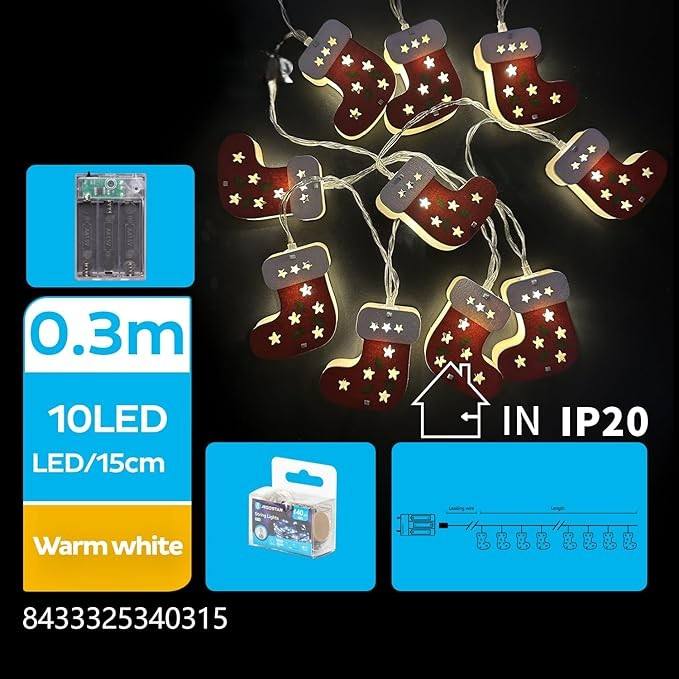 Catena luminosa a LED 10 luci bianche 0,3m+1,5m, con cavo trasparente, 3AA, IP20, timer, ideale per decorazione e
