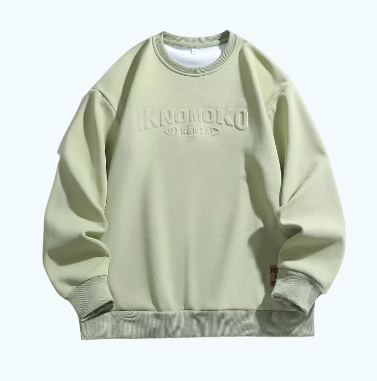 Felpa da Uomo Verde di Alta Qualità con Collo Rotondo, Lettere in Rilievo 3D, Antivento, Calda, Ampia e Oversize con Motivo Uniforme