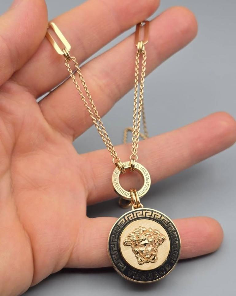 Collana con Ciondoli e Pendenti Personalizzati Ritratto di Medusa in Stile Greco Antico, Gioiello a Catena alla Moda in Acciaio Inossidabile Placcato Oro 18k