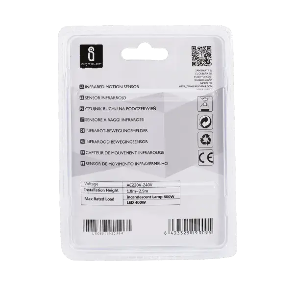 detector de movimiento infrarrojo para pared, blanco, con ajuste de sensibilidad y alcance; ideal para seguridad y control de