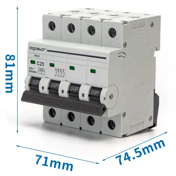 disyuntor automtico en miniatura 4 polos, 25 a, curva c, gris, ideal para proteger circuitos elctricos y prevenir sobrecargas.