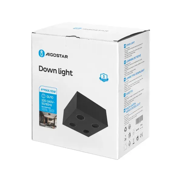 downlight metlico de superficie con cuatro focos gu10 x4, ideal para iluminacin general y decorativa en hogares y oficinas.