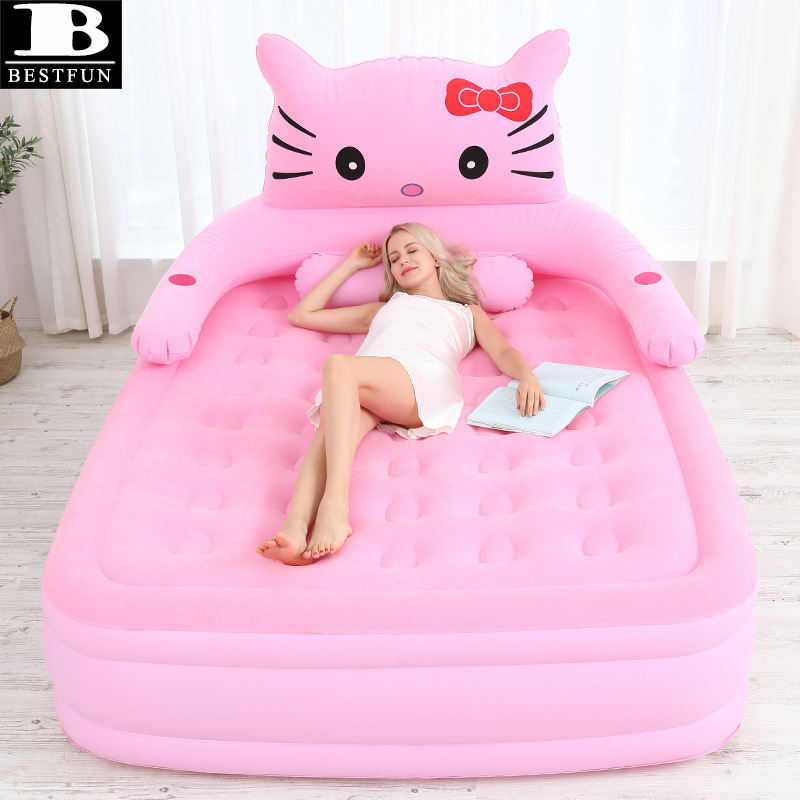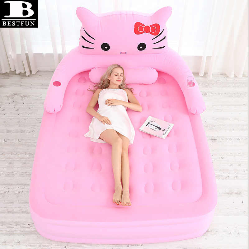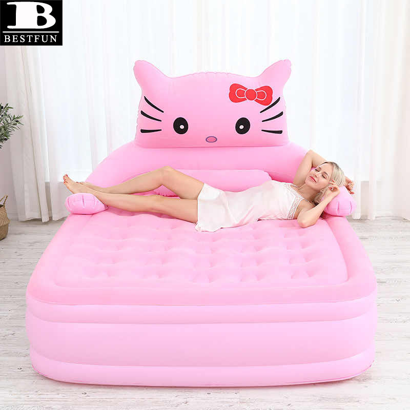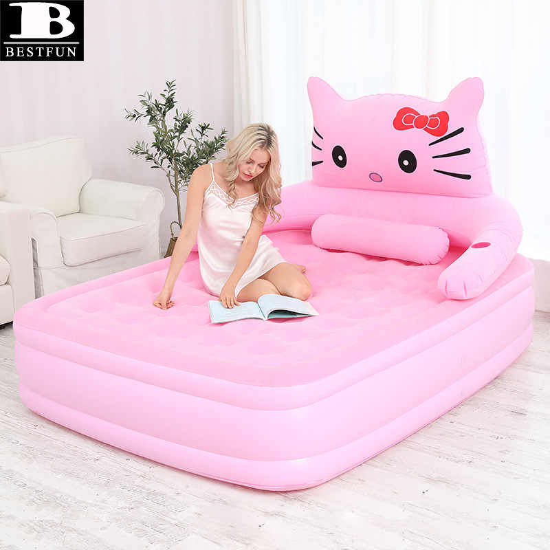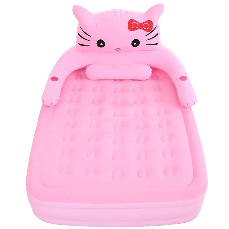 Materasso Gonfiabile a Forma di Gatto Rosa con Schienale Cartoon, Letto ad Aria Queen Size per Campeggio