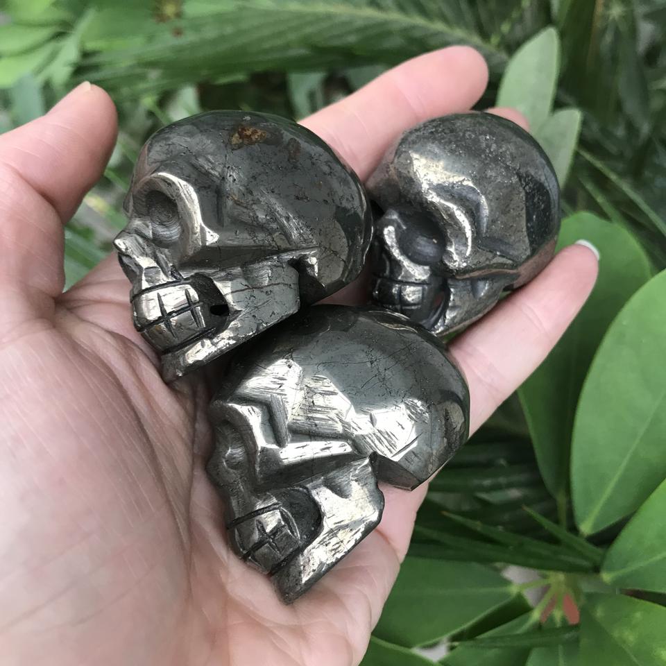dropship hand carved natural rock crystal gemsones 2 inches mini pyrite skulls healing skulls