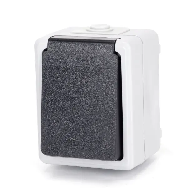 enchufe de montaje en superficie, color gris, 16a, 250v; ideal para instalaciones elctricas en interiores y exteriores.