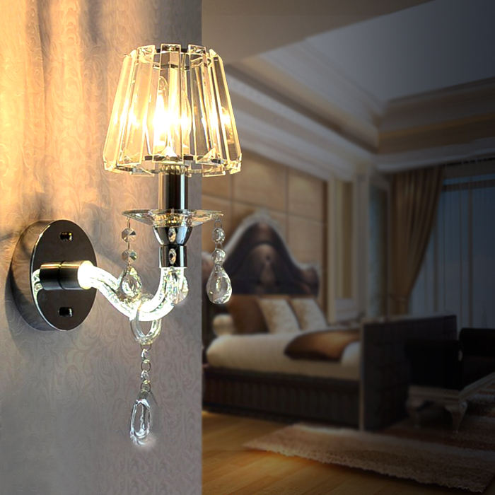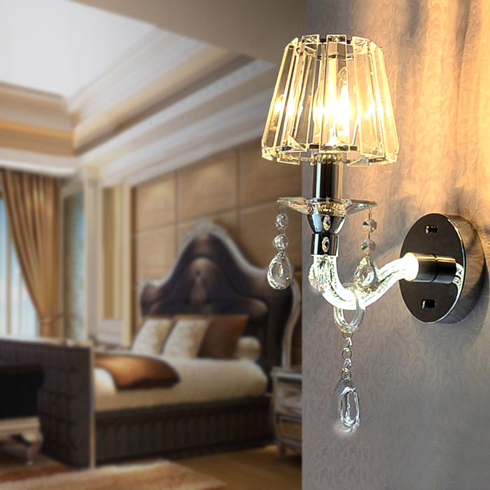 europeo Moderno casa coperta doppio braccio tonalità del metallo di cristallo ha condotto la lampada da parete