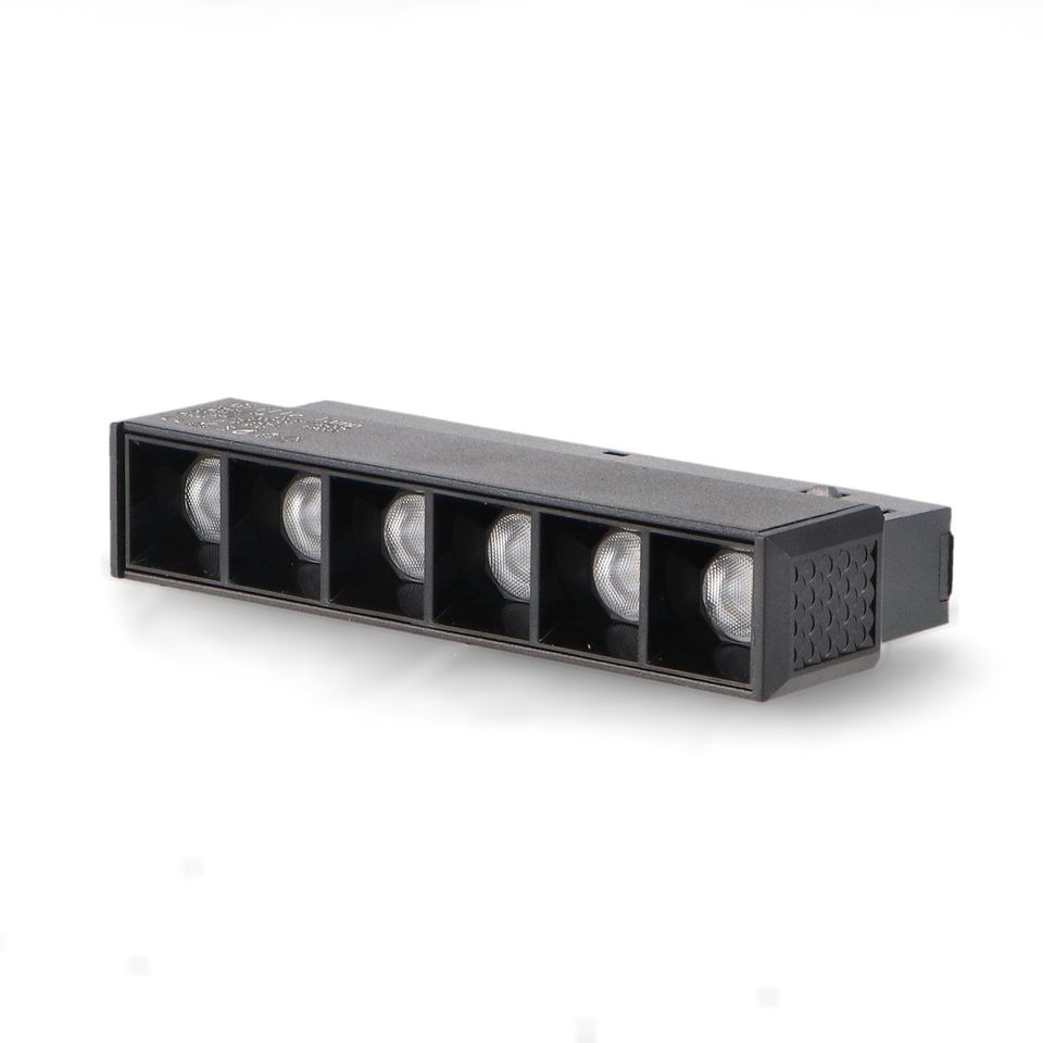 foco led 6w para carril magntico 48v en color negro, temperatura de color 4500k, ideal para iluminacin de espacios