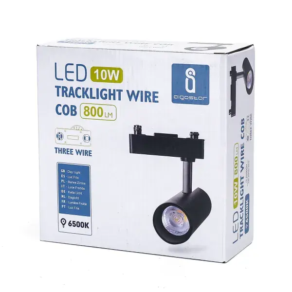 foco led de carril 10w, tres hilos, color negro; ideal para iluminacin de espacios comerciales y domsticos.