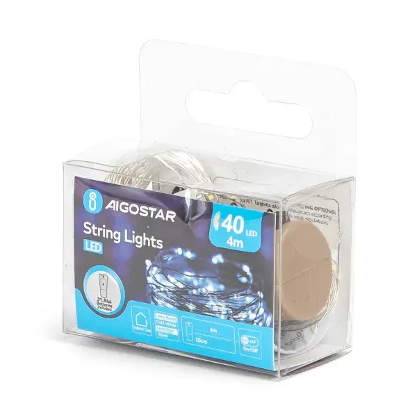 guirnalda de luces led con alambre de cobre, 4 m, pilas de botn, luz blanca fra, ideal para decoracin y ambientacin en