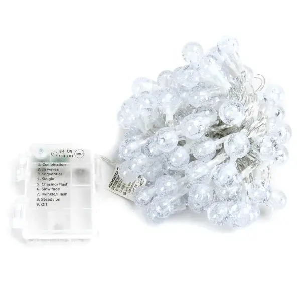 guirnalda de luces tipo burbuja, pilas 3aa, color blanco fro, 10m, ideal para decoracin de interiores y exteriores, crea