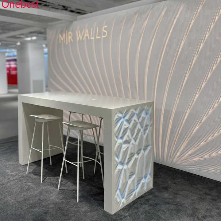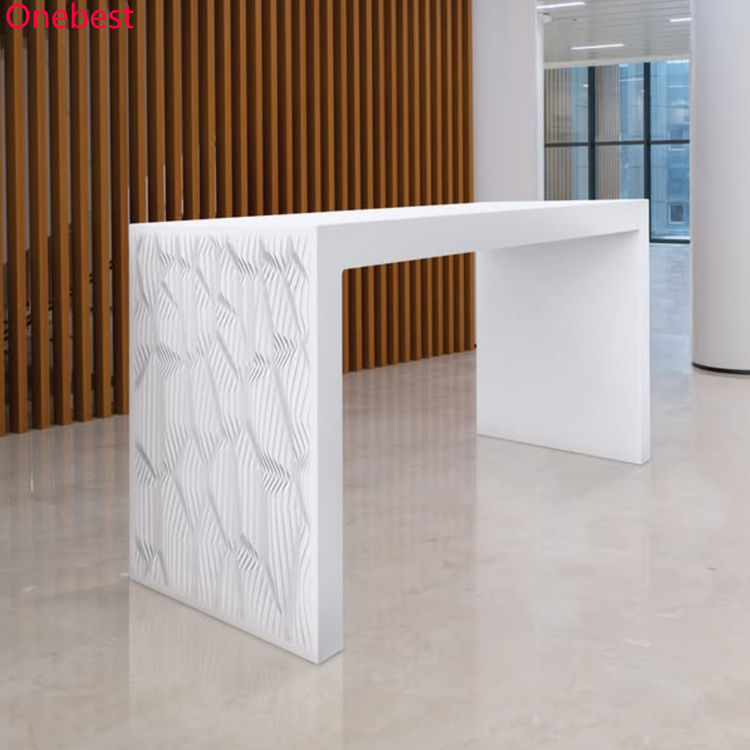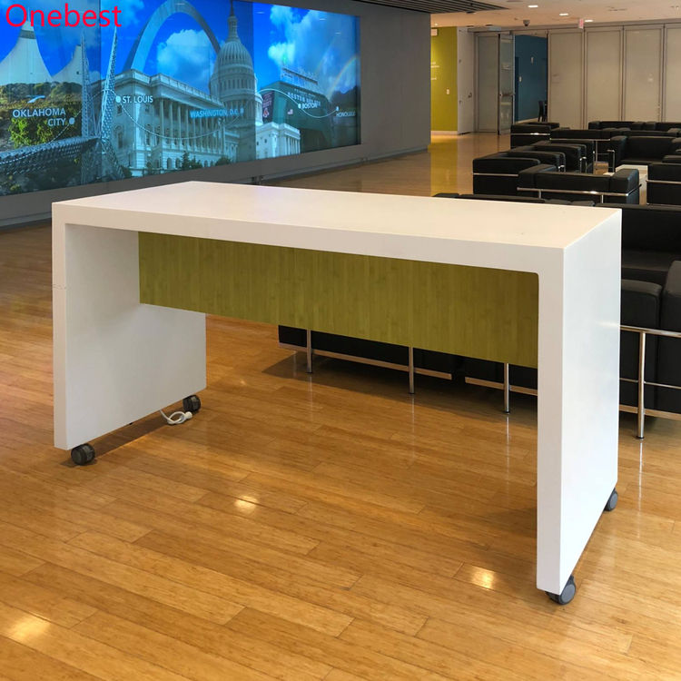 Bancone Moderno per Negozio di Telefonia iPhone, Tavolo Espositivo Alto in Superficie Solida