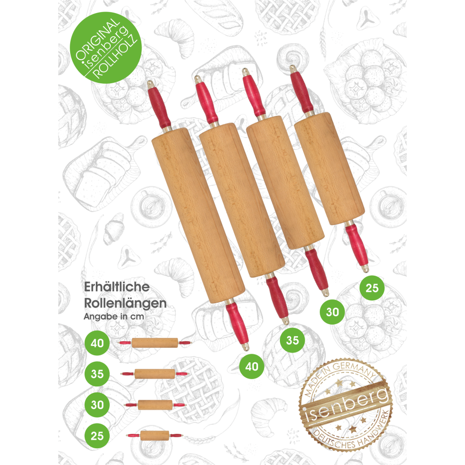 Profi Rollholz ISENBERG Professional Quality Bakery Accessories Durable Hygienic Rolling Pins & Pastry Boards