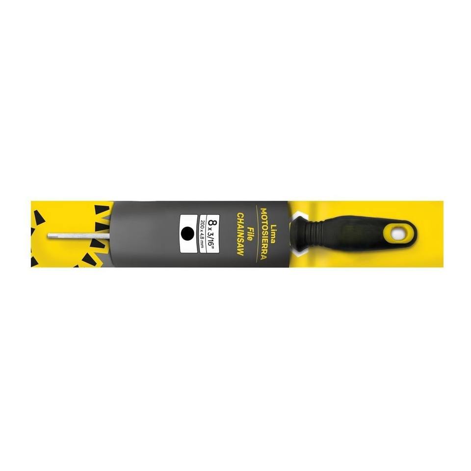 lima para motosierras, mango bimaterial y colgador, ideal para afilar cadenas y mantener el rendimiento de la herramienta.