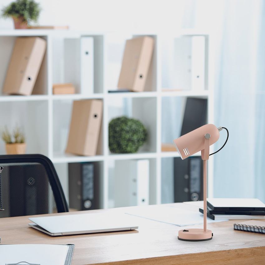 Lampada da tavolo E27, colore rosa e argento, ideale per la decorazione e l'ambientazione degli spazi.