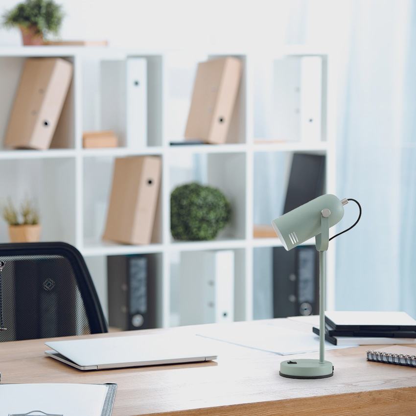 lmpara de mesa e27 verde y plata, diseo moderno, ideal para iluminar espacios de trabajo y decorar interiores.