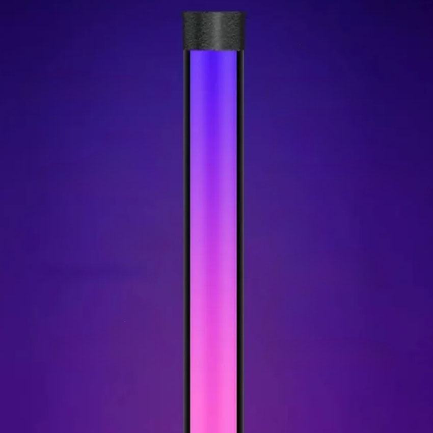 lmpara de pie rgb 18w con mando y sensor de sonido, ideal para ambientar espacios y fiestas con luces dinmicas.