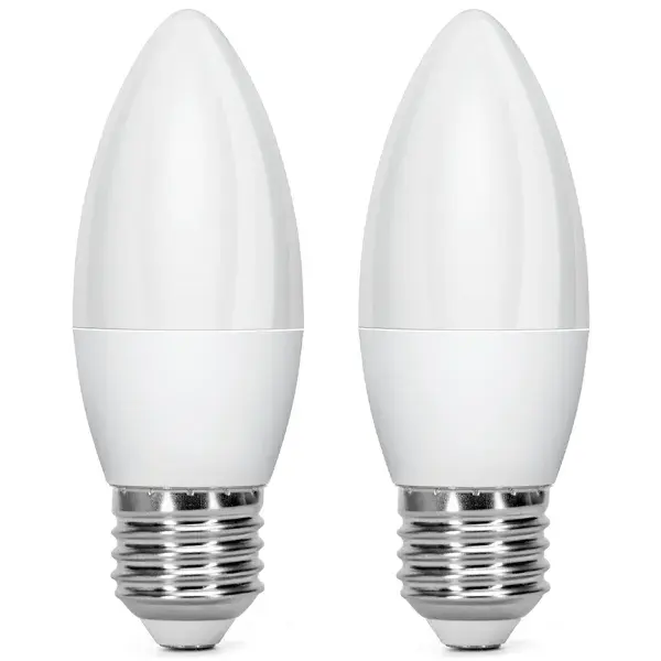 Lampada LED C37 E27 4.9W, confezione da 2, luce efficiente per illuminazione domestica ed efficienza energetica.