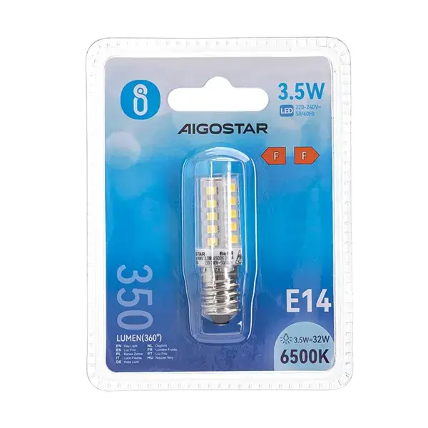 Lampada LED E14 3.5W, luce calda, risparmio energetico, lunga durata; ideale per illuminazione decorativa e d'ambiente in casa.