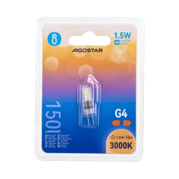 lmpara led g4 1.5w de bajo consumo, larga duracin y eficiencia; ideal para iluminacin decorativa y de acento en espacios