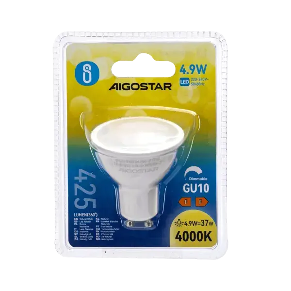 lmpara led gu10 4.9w 4000k regulable, ideal para iluminacin domstica y comercial, permite ajustar la intensidad de luz.