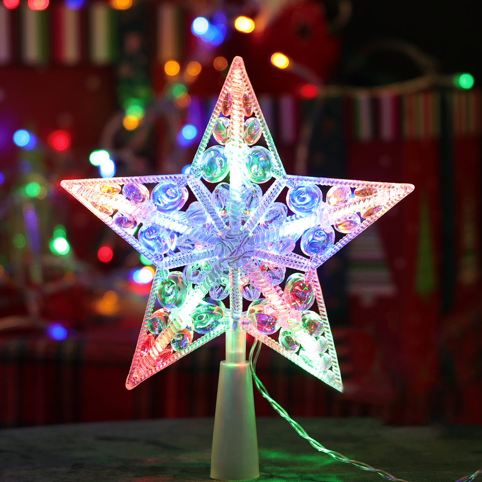 luz led decorativa para rbol, 17 cm, a pilas 3aa, colores rgby; ideal para adornar y crear ambientes festivos.