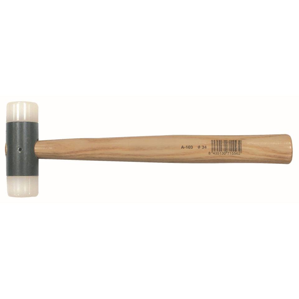 maza de poliamida con mango de madera, resistente y ligera, ideal para amasar, golpear y ablandar alimentos en cocina.