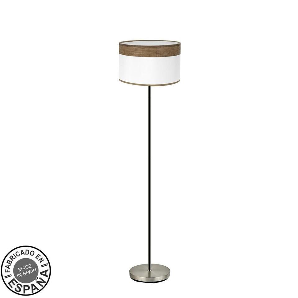 Lampada da terra con portalampada E27, in pelle bianca e legno scuro, dimensioni 162x40x40 cm, ideale per decorazione e