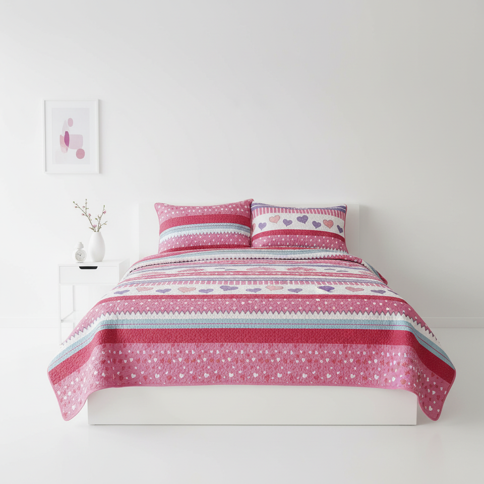 Copriletto per Bambini in Puro Cotone con Stampa a Caldo Rosa, Set Trapunta per Camera dei Bambini