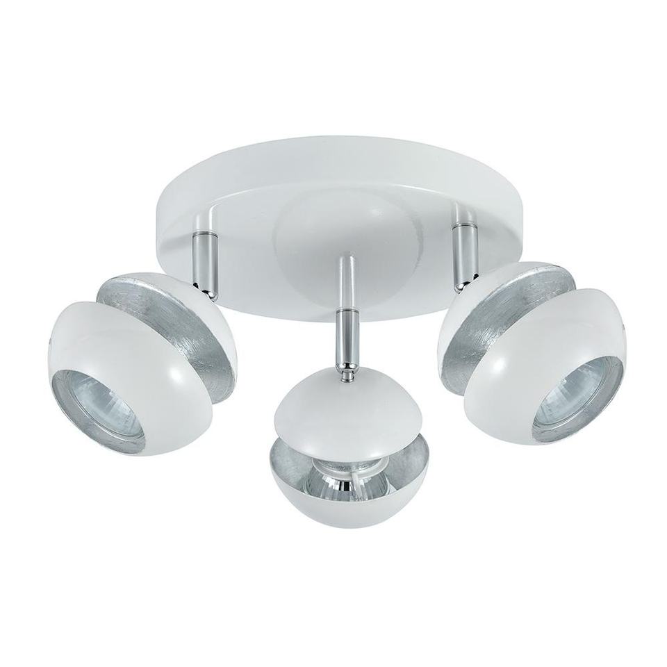 plafn led 3xgu10 blanco y plata, dimensiones 14x22x22 cm, ideal para iluminacin en hogares y oficinas.