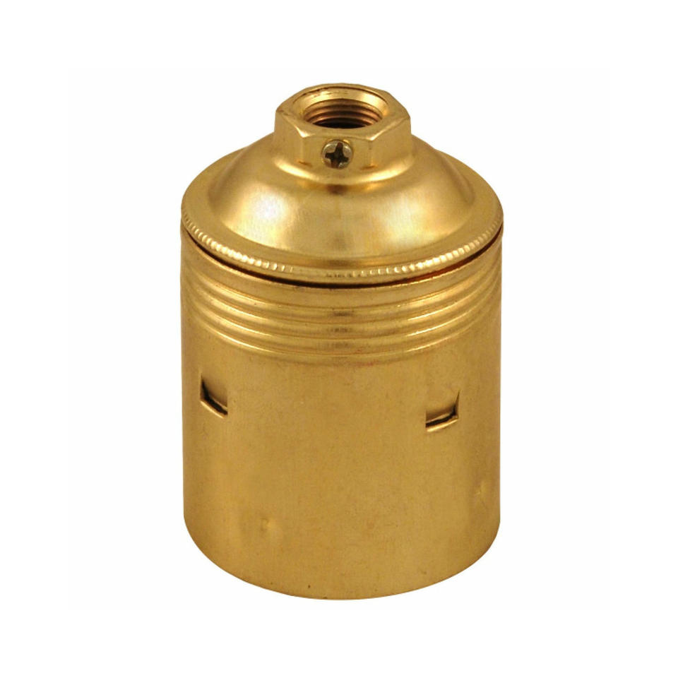 Portalampada E-27 in ottone, design elegante, resistente e durevole; ideale per illuminare spazi interni ed esterni.