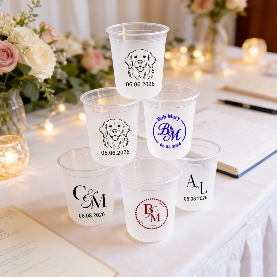 Bicchiere in Plastica a Parete Singola da 400ml 16oz con Coperchio e Cannuccia, Stampa Personalizzata con Nome, Data, Fiore, Matrimonio, Logo Personalizzato