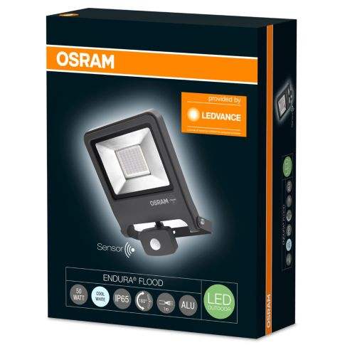 proyector led 50w, 4000k, ip44, con sensor; ideal para iluminacin exterior y seguridad en jardines y entradas.