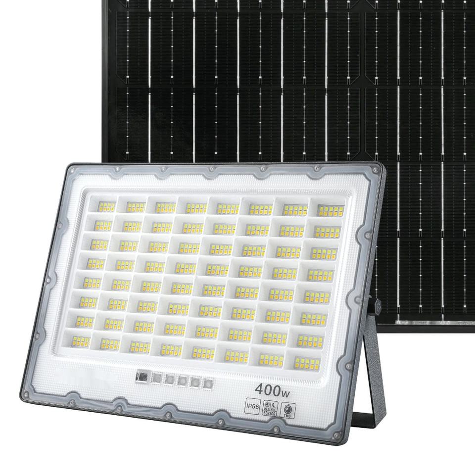proyector led solar 400w ip65 gris, eficiencia, energa solar; ideal para iluminacin exterior y seguridad.