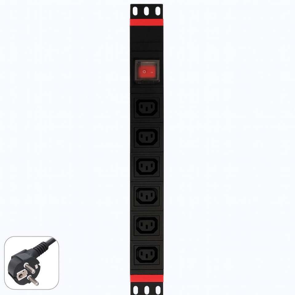 Regolatore di tensione 19\" con 8 prese IEC C13 Schuko, ideale per la distribuzione elettrica in rack, centri dati e apparecchiature da ufficio.