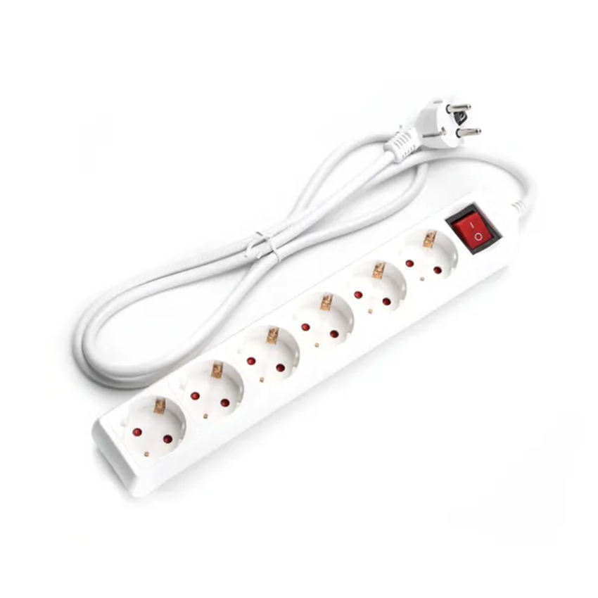 regleta de 6 vas con interruptor, 1,5 m, 3g, 1,5 mm blanca para conectar mltiples dispositivos elctricos de forma segura.