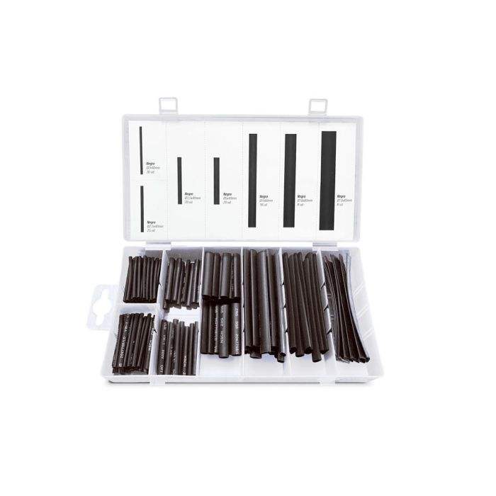 set de 127 fundas termoretrctiles negras, diversas medidas, resistencia al calor, ideales para aislar cables y componentes