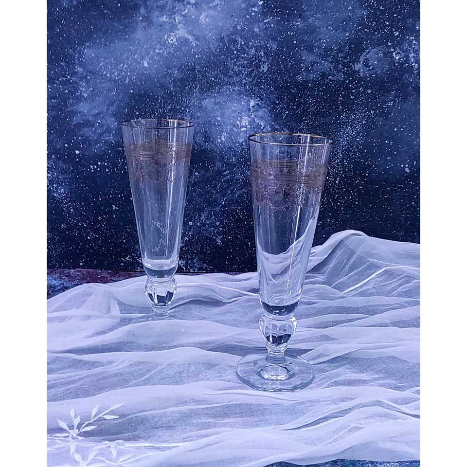 Set di 12 Flûte in Cristallo Serigrafate Altezza 20,5 cm Nuove dalla Negozia