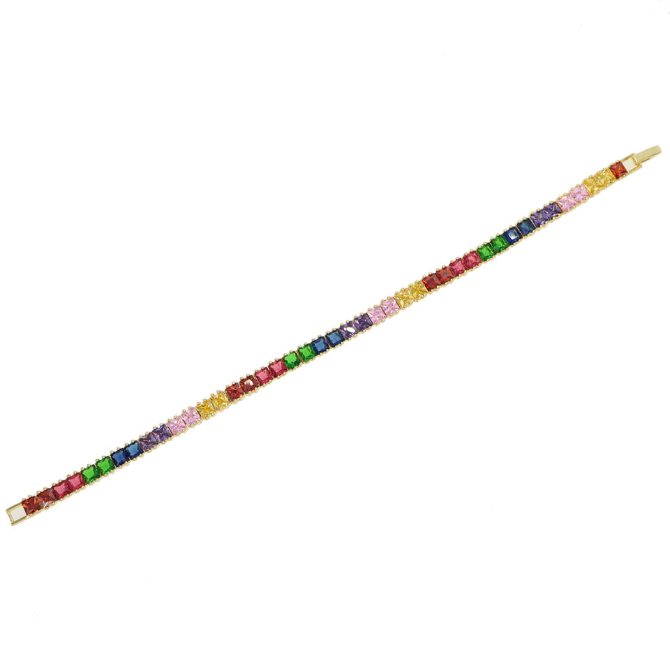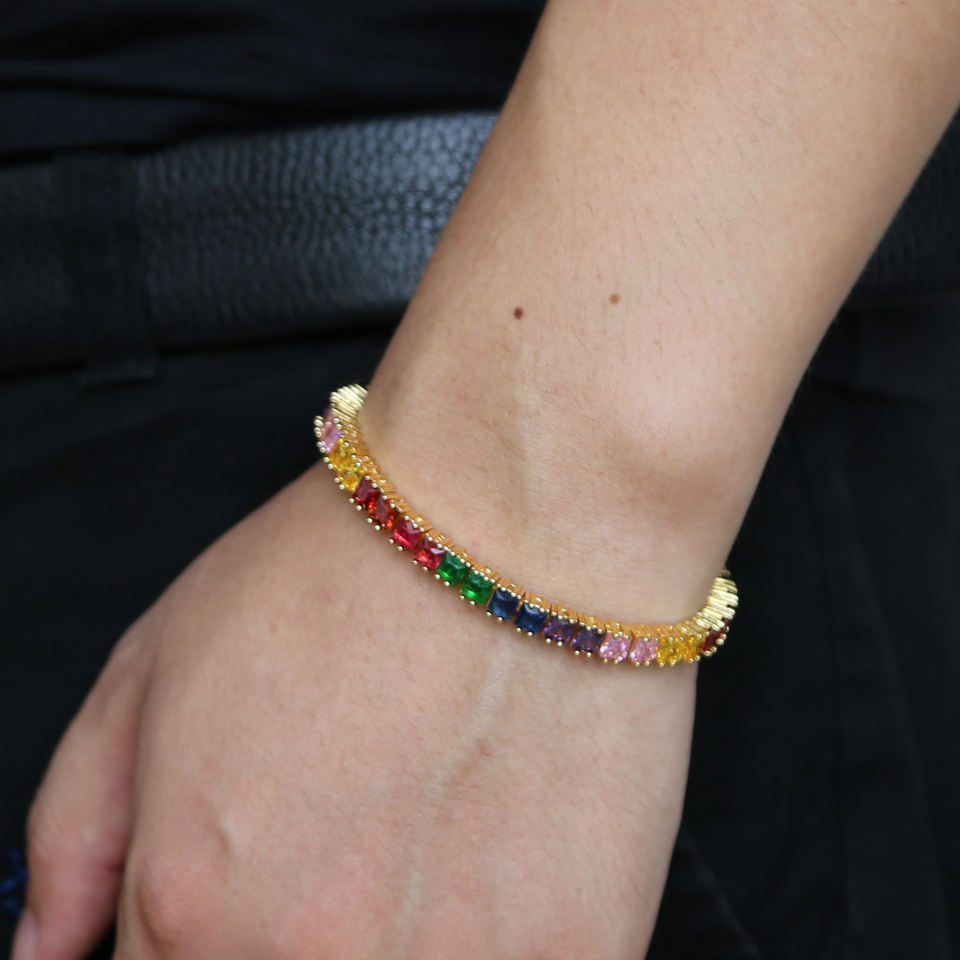 square Tennis Cz Bracelet for Men Women Colorful Fashion Jewelry with rainbow Cubic Zirconia