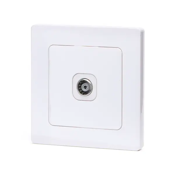 toma de tv 1 va blanca, compatible con conexiones alemanas y francesas, ideal para instalaciones de entretenimiento.