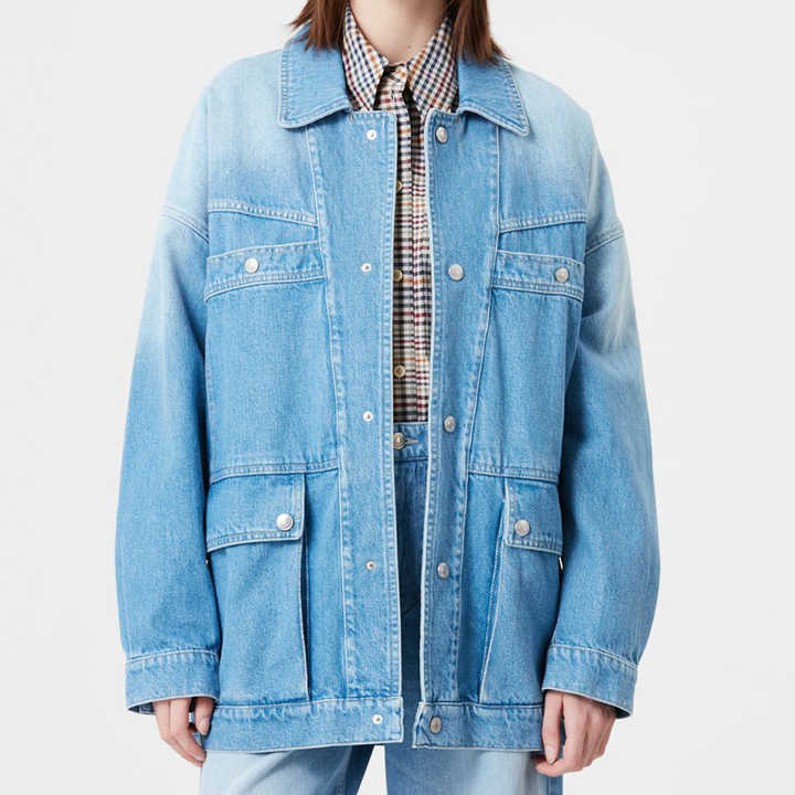 wholesale Women Fashion Sexy Outfit Stylish Cool Plain Long Sleeve Button Up Cropped Top Denim Jacket