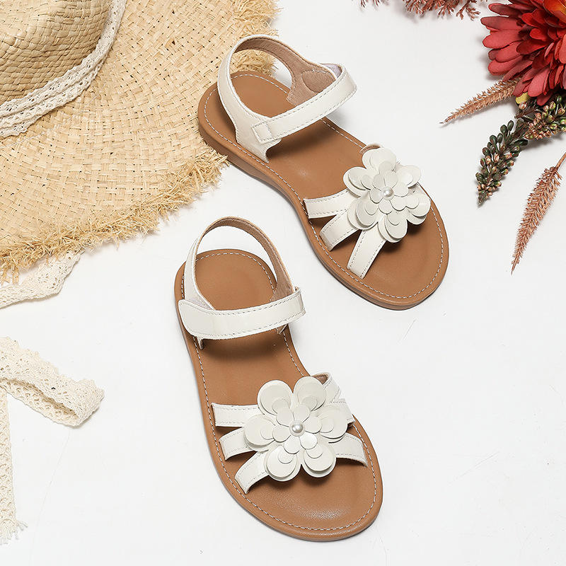Sandali da bambina Xian Girls' Princess con fiori, suola morbida, bianchi, piatti, comodi, per feste e tutti i giorni.