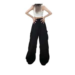 Pantaloni da donna a gamba larga con coulisse in vita alta e cuciture a contrasto, modello Barrel, spedizione rapida - Collezione 2026