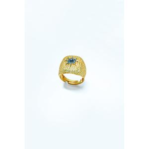 Anello da Cocktail Glamour in Ottone Placcato Rame e Oro Bianco con Zirconi Naturali Incastonati a Micro Pavé, Gioiello da Matrimonio per Uomo F1762