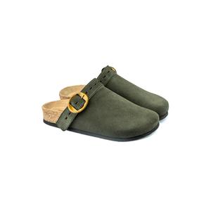 Sandali con zeppa di sughero in pelle scamosciata