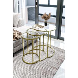 Tavolini Moderni Rotondi in Acciaio Inox con Base Dorata